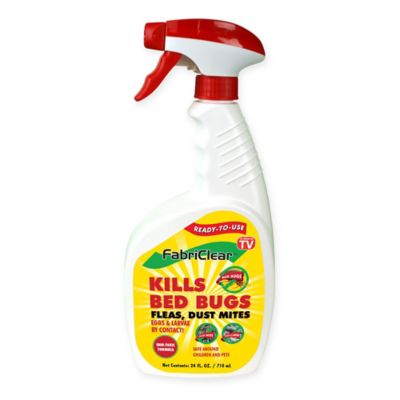 Fabriclear bed bug spray. Fabriclear is an easy to use spray that kills bed bugs and other critters instantly on contact. Fabriclear is a spray that claims to be able to kill bed bugs and dust mites with a non toxic solution. If you are having a hard time sleeping at night because of these blood sucking parasites or think you have a looming bed bug infestation because of your history of travel.